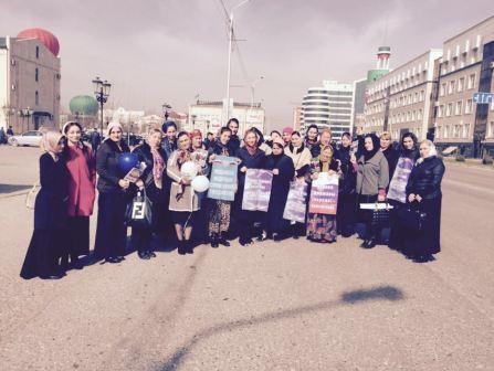 Коллектив школы на митинге в Грозном, посвященном Дню Конституции Чеченской республики