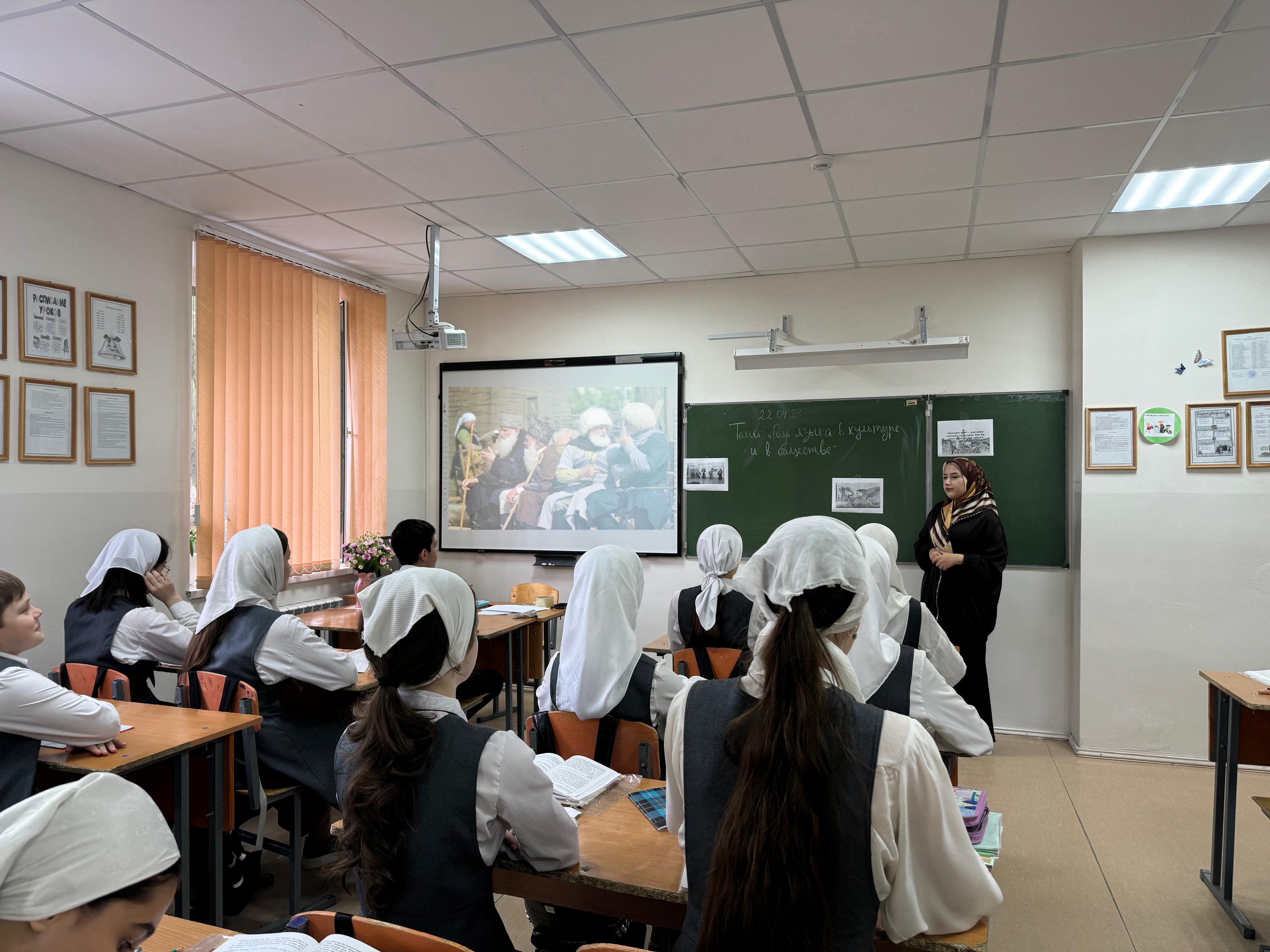 22.04.202522 апреля на базе МБОУ «СОШ №10 г. Шали» прошли беседы, на тему «Роль языка в культуре и обществе», приуроченные ко Дню чеченского языка. Беседы проводились в целях: - раскрытия значения языка, как важнейшего инструмента коммуникации и хранителя культурного наследия; - изучения языкового разнообразия и его влияния на традиции народов; - способствования популяризации языкового и культурного наследия. В беседах приняли участие обучающиеся 5–11 классов в количестве 246 человек. Язык – главное достояние народа, и его сохранение – священный долг каждого. Огромный вклад в сохранение чеченского языка внёс Глава Чеченской Республики, Герой России Р.А. Кадыров. Его искренняя любовь к родной речи проявляется в словах: «Народ жив, пока жив его язык. Мы должны бережно относиться к родной речи.» Чеченский язык невероятно красив и глубок. Ни один другой язык не способен так точно передать суть нашей культуры, традиций и обычаев. Мы обязаны сохранить его для будущих поколений – наших детей и правнуков.